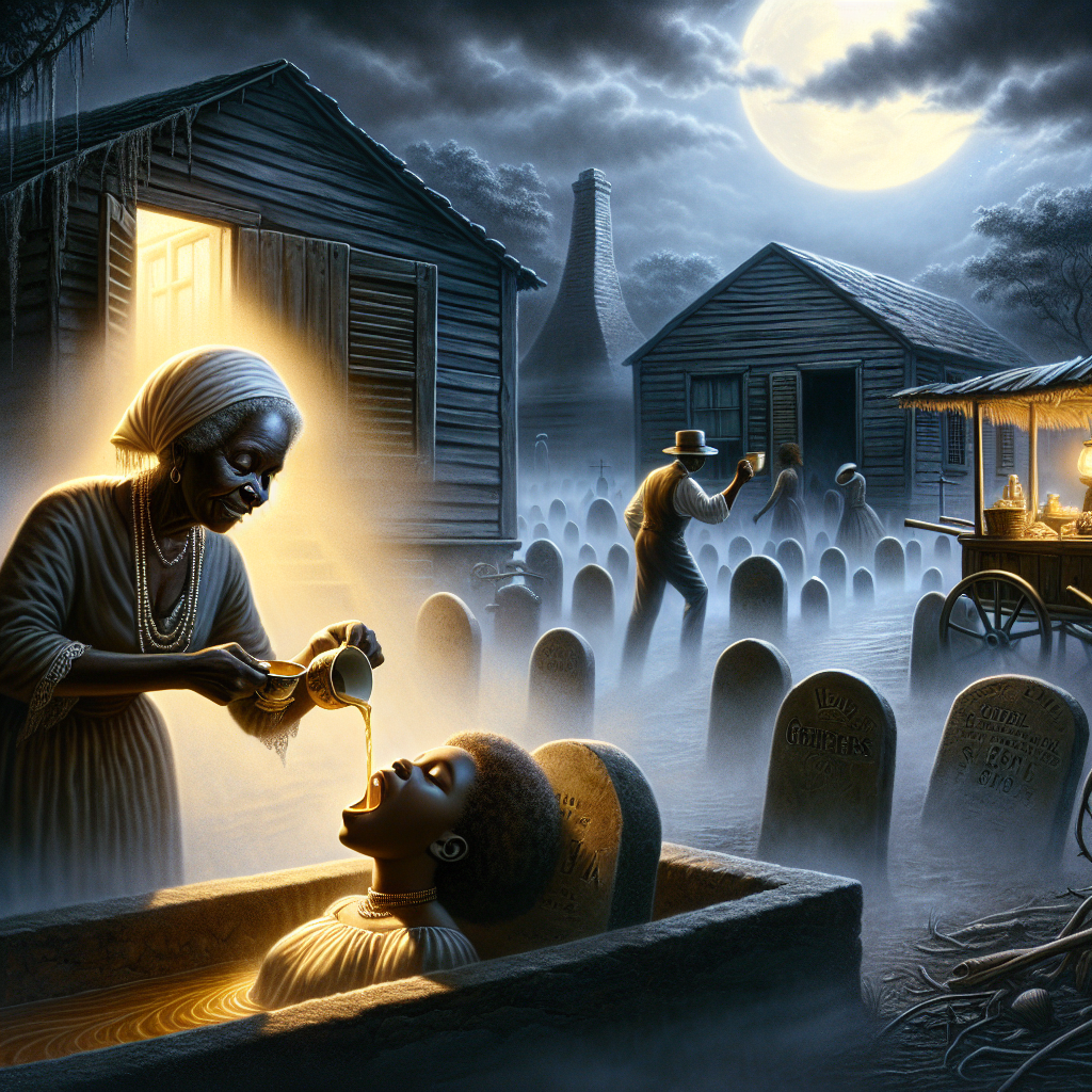 In 19th century Charleston, South Carolina, a middle aged Black woman uses her family tea to revive Black corpses. One night, she makes a shocking discovery about the man who's kept the bodies hidden.